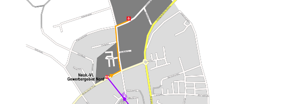 Nach dem Ausstieg aus dem Bus halten Sie sich rechts auf dem Neukirchener Ring. Nach circa 90 Metern biegen Sie links in die Hochstraße ein, bis Sie nach etwa 250 Metern rechts in die Oderstraße abbiegen.